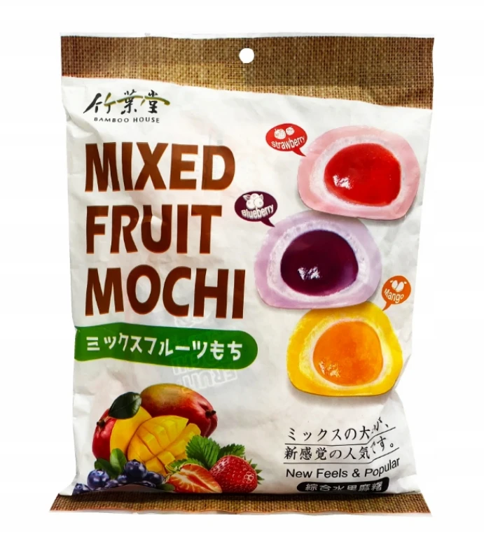 Odkryj słodką przyjemność w japońskim stylu! Mochi Bamboo House o mieszanej owocowej nucie to delikatne, miękkie ciasteczka ryżowe z pysznym nadzieniem o różnych smakach owocowych. Idealne jako deser, przekąska lub słodki dodatek do herbaty.