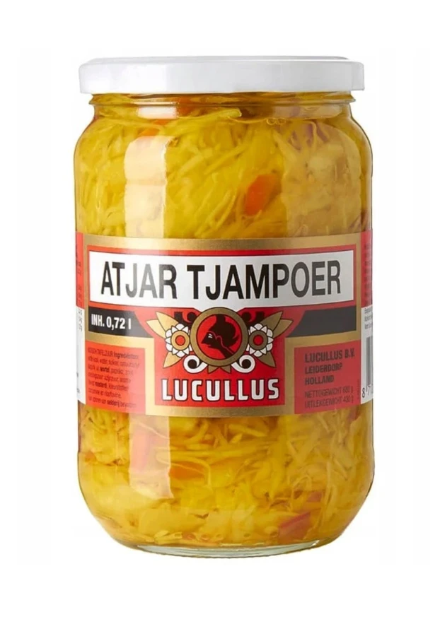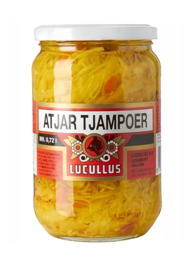 Atjar Tjampoer od marki LUCULLUS to klasyczna, indonezyjska sałatka warzywna w lekkiej marynacie octowej, która świetnie komponuje się z daniami kuchni orientalnej oraz mięsami, ryżem czy potrawami z grilla. Teraz w dużym, ekonomicznym opakowaniu – idealna do gastronomii lub większego gospodarstwa domowego.